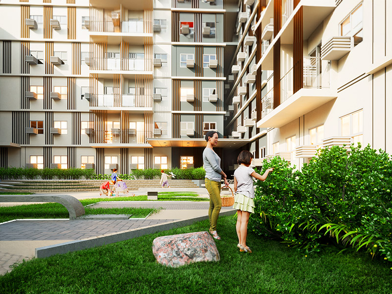 Profriends’ first condominium project inside Lancaster New City feature clusters of 4-storey buildings that are characterized by its various outdoor lifestyle spaces and greeneries that allow you to connect with friends and neighbors.
